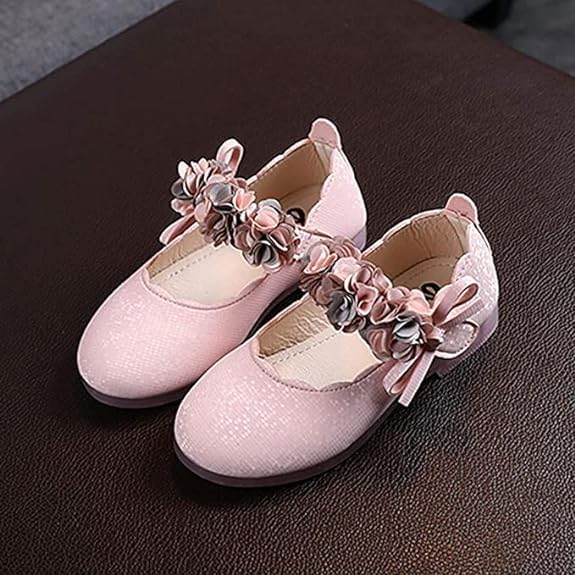 Baby and Girls Dress Shoes Mary Jane Flats with Flowers - S0005