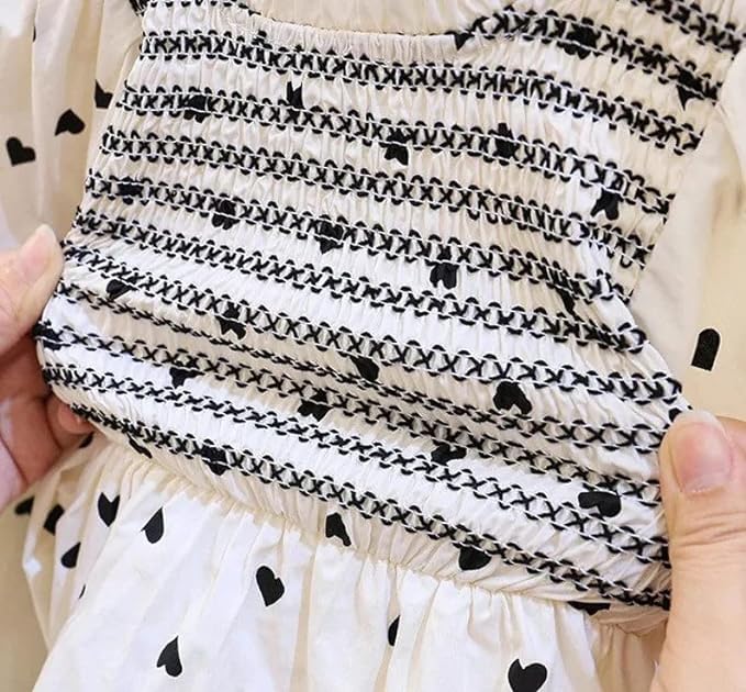 - 🩷Adorable Hearts Print: Our girls' two-piece outfits feature a puffy long sleeves shirt adorned with adorable hearts print, adding charm to your little one's wardrobe.