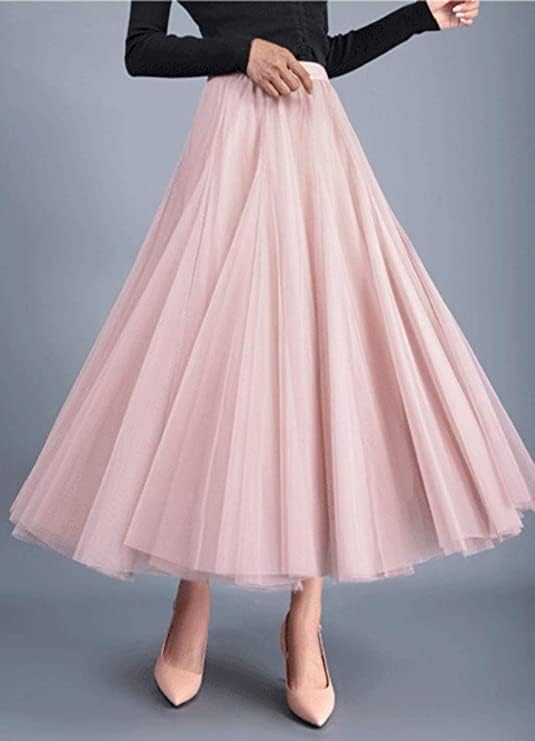 Women's Layered Tulle Skirts A-Line Mesh Midi Lenght Elegant Party