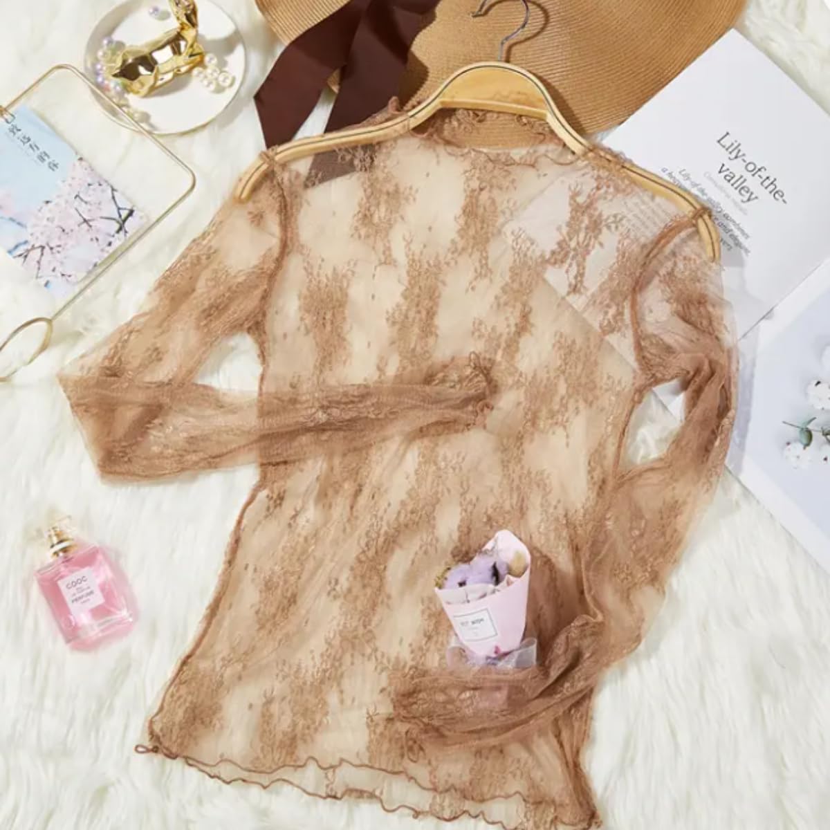Women's Long Sleeve Turtleneck Lace Mesh Shirt Elegant Occasion