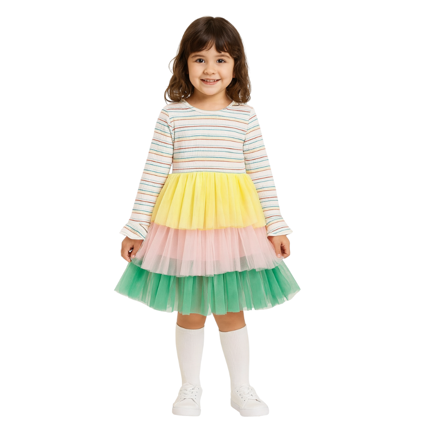 Casual Dress Long Sleeve Tulle Skirt for Autumn Winter Rainbow Dress - G0024