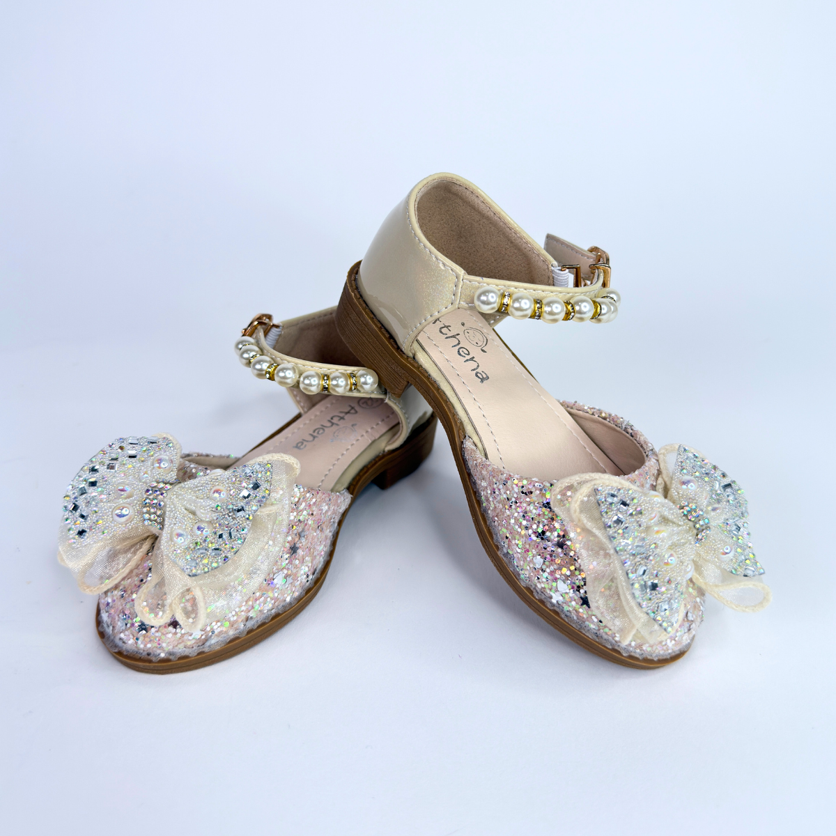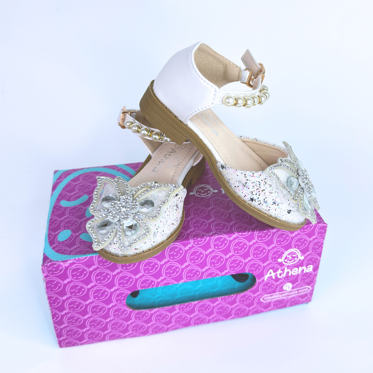 Girls' Shoes with Glitter, Pearls and Butterfly Applique