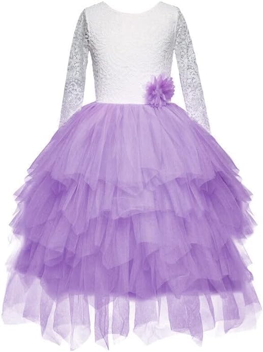 Long Sleeve lace Dress with Layered Tulle Skirt for Girls - G0088
