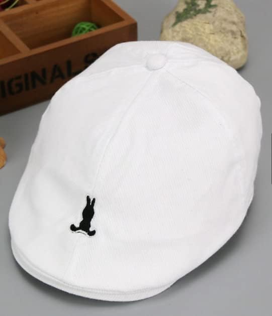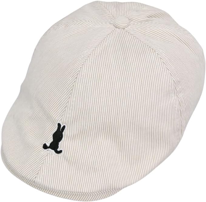 Boys' Striped Newsboy Cap with Embroidered Bunny