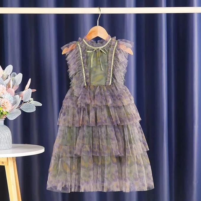 Printed Dress with Tulle and Ruffle Layers - Fall dresses for girls - G0101